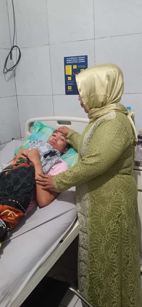 Usai menengok warga di Ciocong, perempuan pengusaha percetakan yang dikenal aktif melakukan kegiatan kemanusiaan itu, langsung mengunjungi warga yang sedang dirawat di PKM BL. Limbangan karena terjangkit DBD.