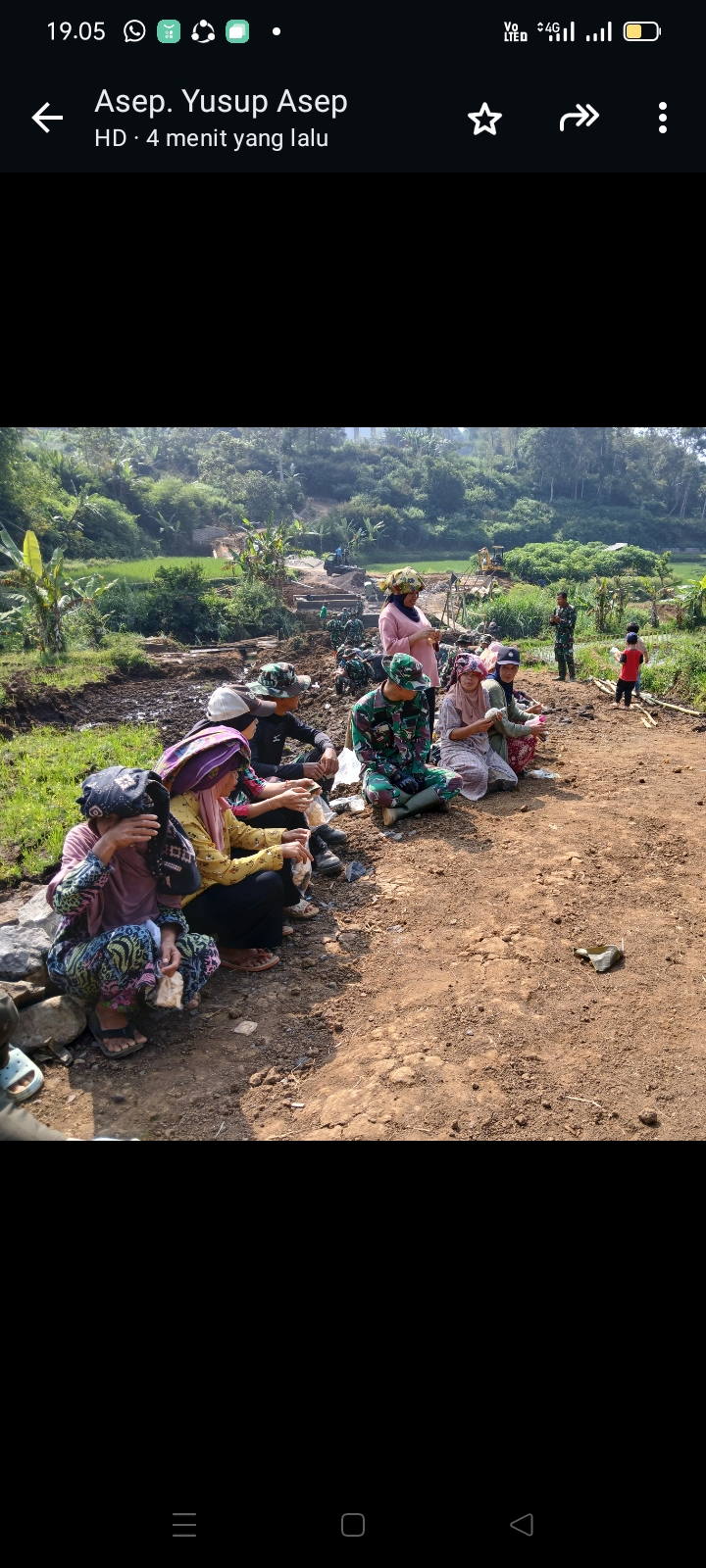Hal itu ditunjukkan Danramil 1114/Bayongbong Kapten Inf Supriatna dan personil satgas TMMD ke 120 begitu akrab dan hangat dengan para ibu-ibu yang turut membantu dalam pembangunan jembatan pada program TMMD ke 120 Kodim 0611/Garut.