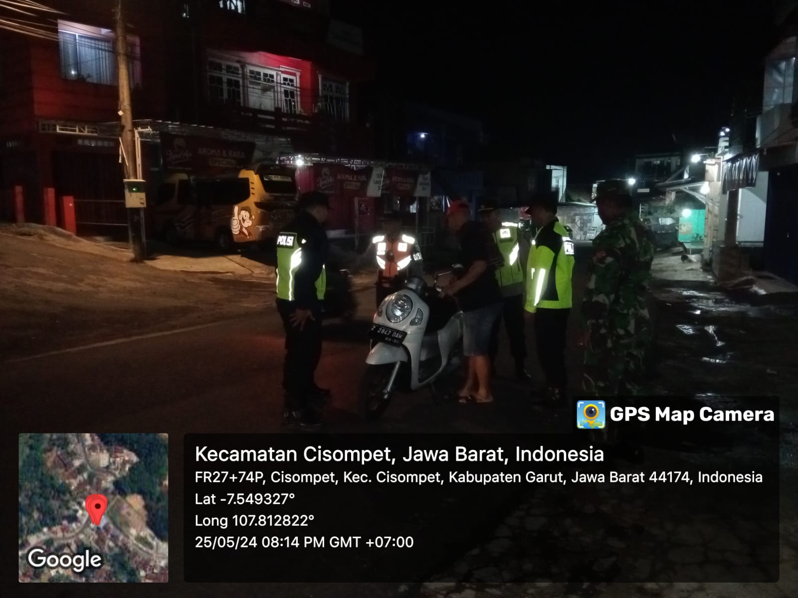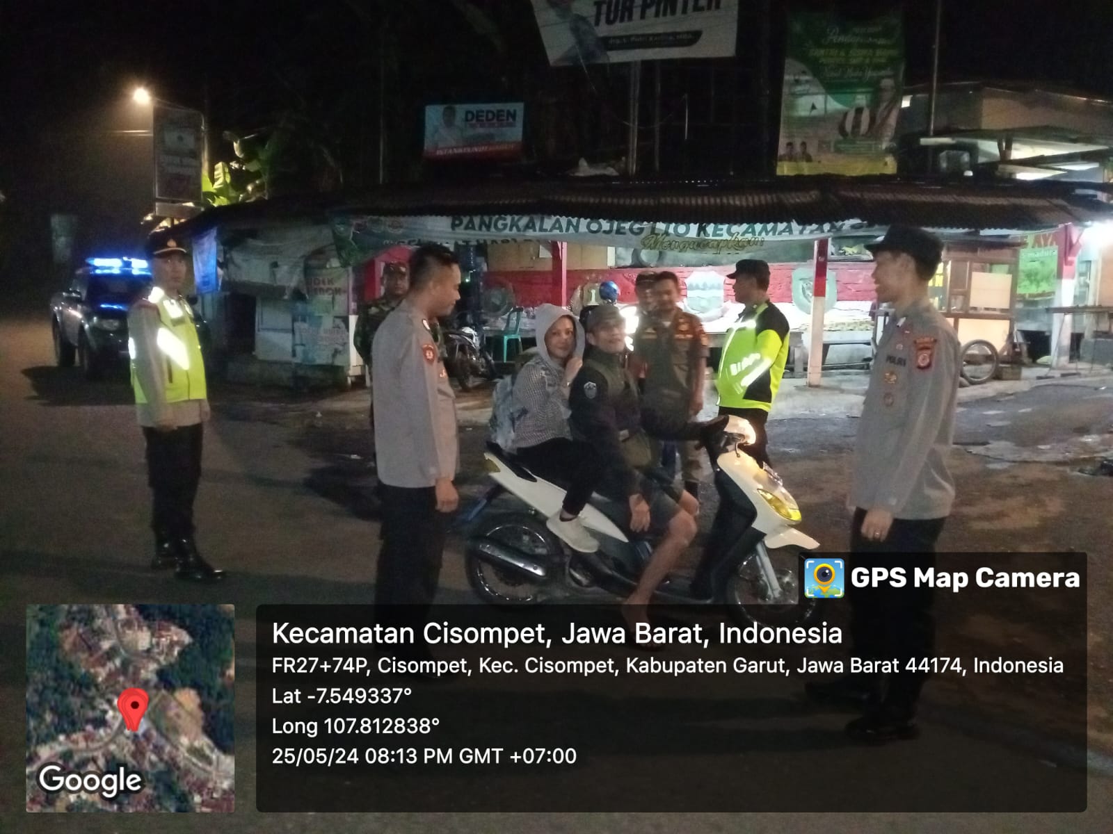 Sabtu Tgl 25 Mei 2024, pukul 20.00 Wib s.d Selesai bertempat di Pertigaan Pangkalan Ojeg Kamtibmas Desa Cisompet, Telah dilaksanakan Giat Apel Gabungan (KRYD) dalam Rangka Antisipasi *Longweakend* (Libur Panjang) yang Aman, Tenteram, Terbebas dari Tindak Pidana Curat, Curas, Curanmor di Wilayah Kec Cisompet Kab Garut.