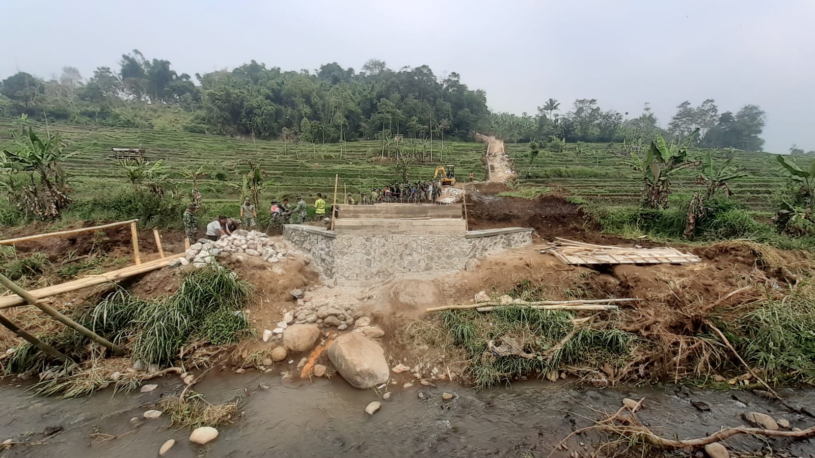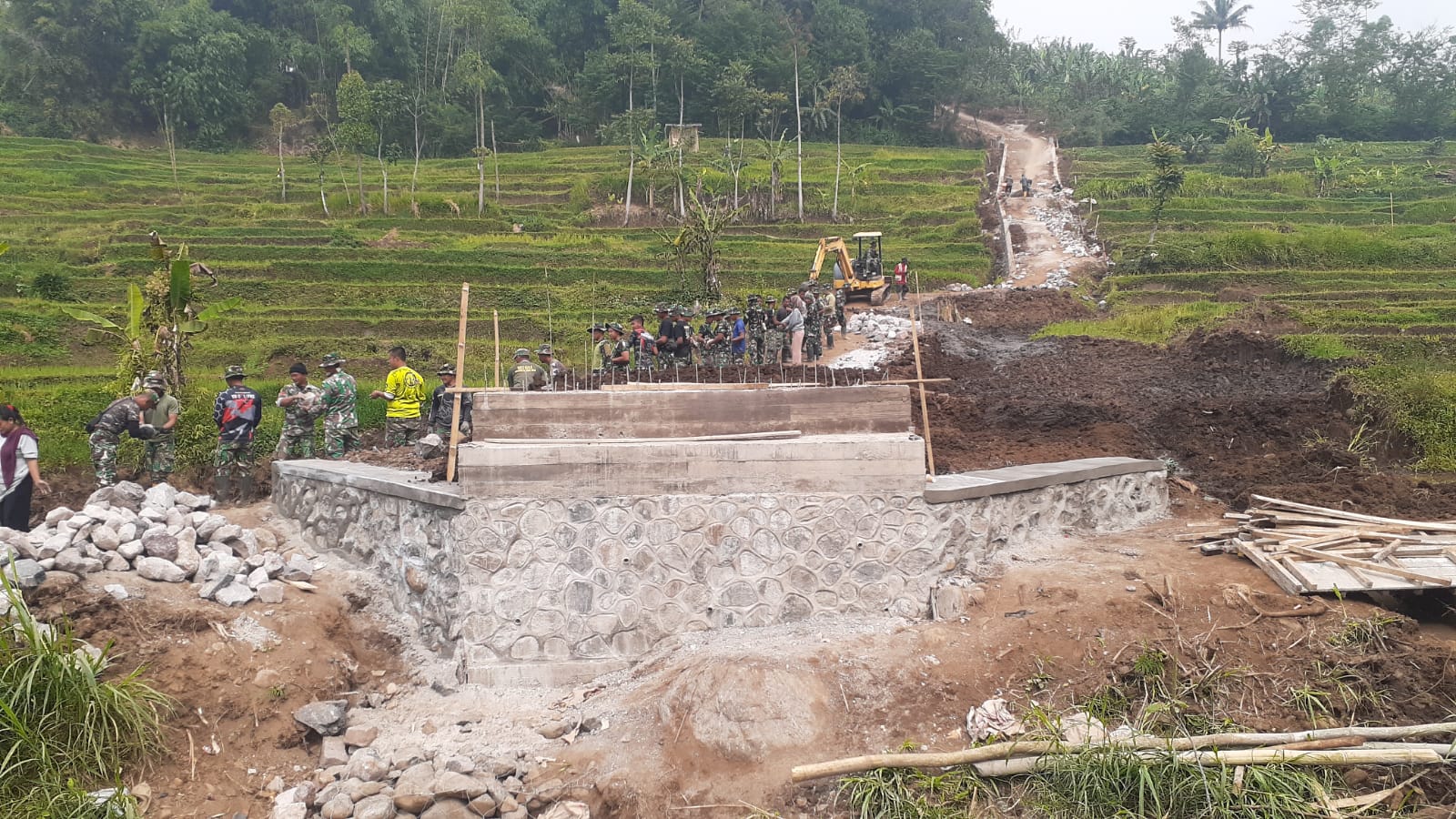 Bapak Yadi, salah satu pekerja di lokasi jembatan, menyatakan rasa syukurnya, “Alhamdulillah, penyangga jembatan atau abutment telah selesai dibangun dan dalam waktu dekat, baja WF akan dipasang untuk pengecoran jembatan.” katanya.