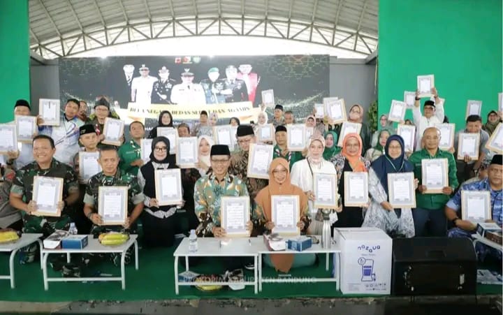 KAB. BANDUNG – Sebanyak 38.300 peserta dari kalangan guru ngaji, siswa-siswi, ASN Pemkab Bandung, TNI, Polri, kader PKK, para camat, Organisasi Perangkat Daerah, Ormas/OKP serta pihak lainnya di Kabupaten Bandung mengikuti Gerakan Menulis Al-Qur’an (Gelisan). Gelisan ini pecahkan Rekor MURI (Museum Rekor Dunia Indonesia) dengan kategori menulis Al-Qur’an terbanyak di Indonesia, Sabtu (25/5/2024).