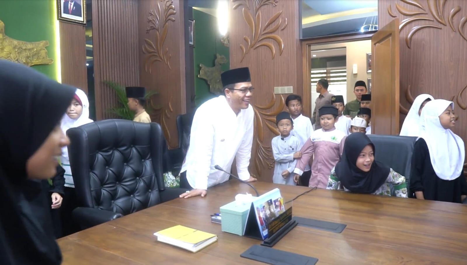 Bupati Dadang Supriatna kemudian mengajak anak-anak tersebut ke ruang kerjanya yang berada di samping ruang rapat.
