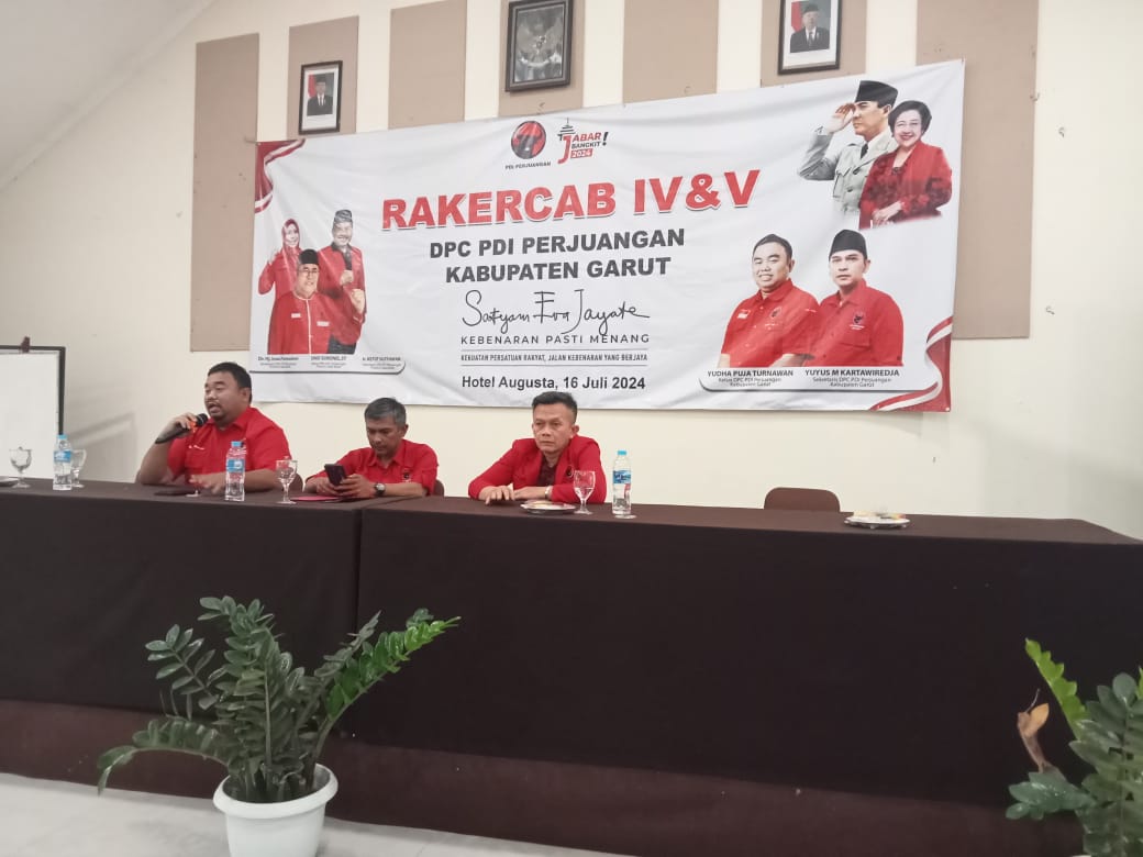 Garut, 16 Juli 2024 – Rapat Kerja Cabang (Rakercab) IV dan V DPC PDI Perjuangan Kabupaten Garut berlangsung di Hotel Agustus, Kecamatan Tarogong Kaler, Garut, Jawa Barat. Dalam acara tersebut, Ketua DPC PDI Perjuangan, Yudha Puja Turnawan, menyatakan bahwa acara ini berfokus pada konsolidasi internal dengan mengundang PAC, Ranting, dan Anak Ranting sebagai persiapan menghadapi Pilkada serentak 2024.
