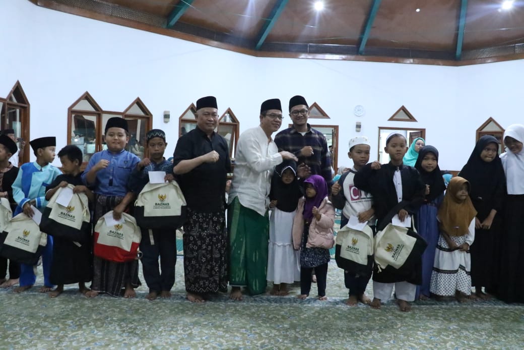Bupati Bandung Dadang Supriatna yang digelari Abul Yatama atau Bapaknya Anak Yatim oleh Baznas Kabupaten Bandung, kembali memberikan santunan kepada puluhan anak yatim, di sela kegiatan rutin pengajian Malam Jumat, di Rumah Dinas Bupati Bandung, Kamis (18/7/2024) malam.