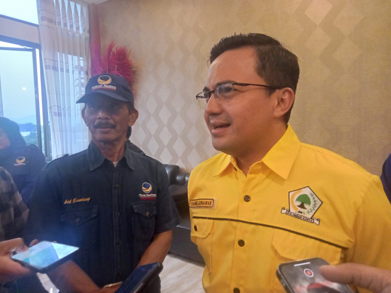 Sahrul Gunawan yang diusung Partai Golkar dan berkoalisi dengan PKS dan PDI-P bertemu dengan para pengurus DPC Partai Nasdem Kabupaten Bandung di RM. Pawon Bu Sri Soreang.