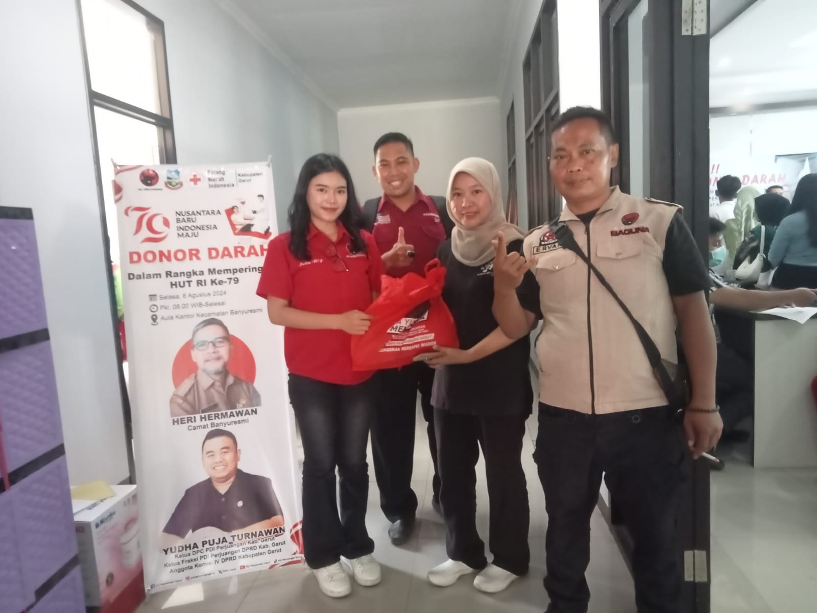 Garut, 6 Agustus 2024 – Dalam rangka memperingati Hari Ulang Tahun (HUT) ke-79 Republik Indonesia, Dewan Pimpinan Cabang (DPC) PDI Perjuangan menggelar acara donor darah yang terbuka untuk umum. Acara ini diadakan di aula Kecamatan Banyuresmi, Kabupaten Garut, Jawa Barat, dan menyediakan door prize serta bingkisan sembako bagi para pendonor.