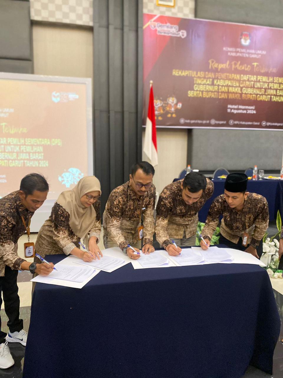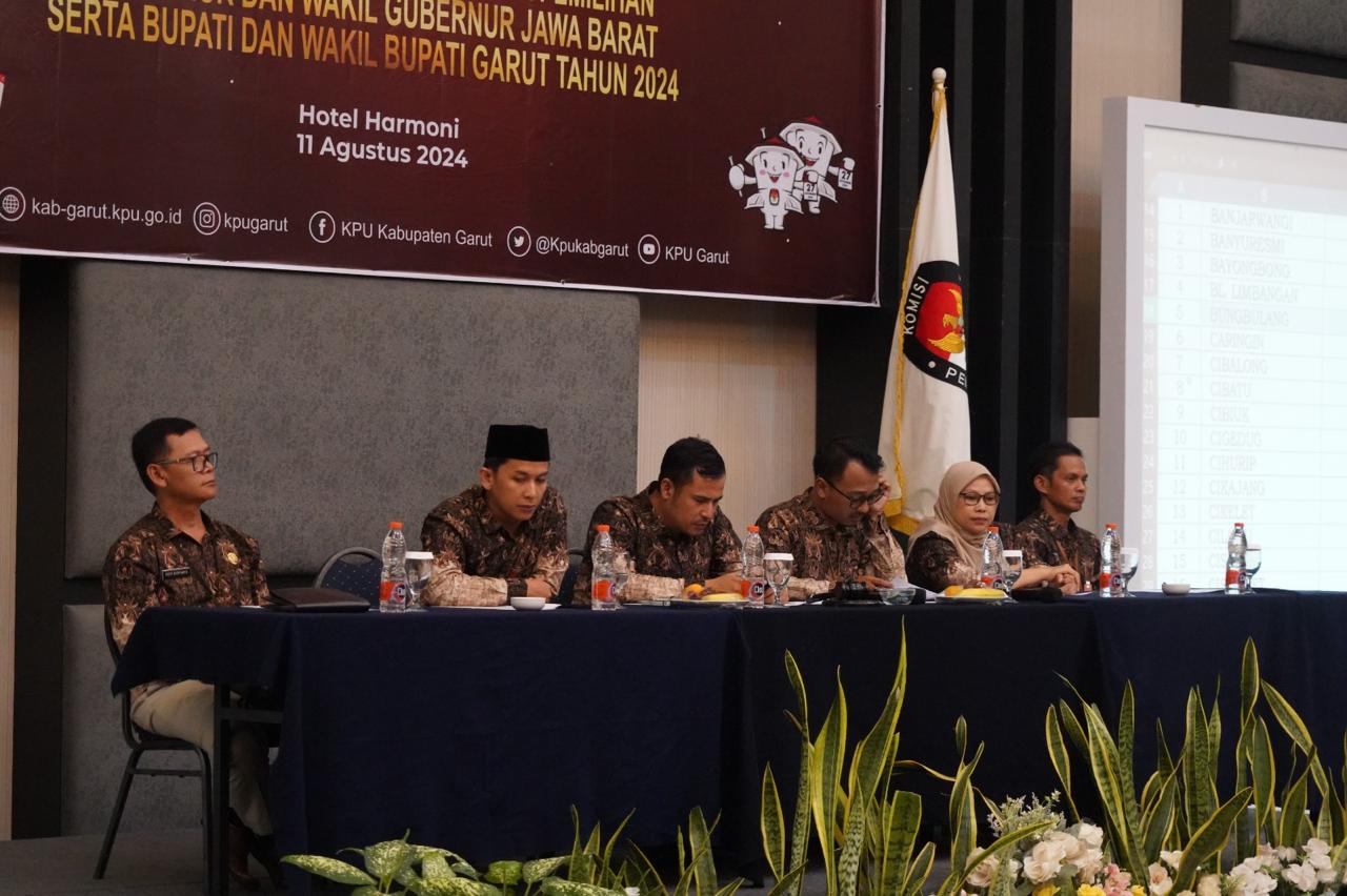 *GARUT, Tarogong Kaler* – Komisi Pemilihan Umum (KPU) Kabupaten Garut menggelar Rapat Pleno Terbuka Rekapitulasi dan Penetapan Daftar Pemilih Sementara (DPS) untuk Pemilihan Gubernur dan Wakil Gubernur Jawa Barat serta Bupati dan Wakil Bupati Garut tahun 2024. Acara ini berlangsung di Ballroom Hotel Harmoni, Kecamatan Tarogong Kaler, Minggu (11/8/2024).