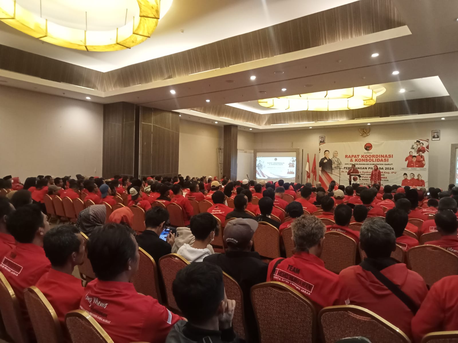 Garut, Dewan Pimpinan Cabang (DPC) PDI Perjuangan Kabupaten Garut menggelar rapat koordinasi dan konsolidasi internal dalam rangka persiapan pemenangan Pilkada periode 2024-2029.Acara ini diadakan di Pafe Hotel, Kecamatan Tarogong Kidul, Kabupaten Garut, Jawa Barat.(6 September 2024).