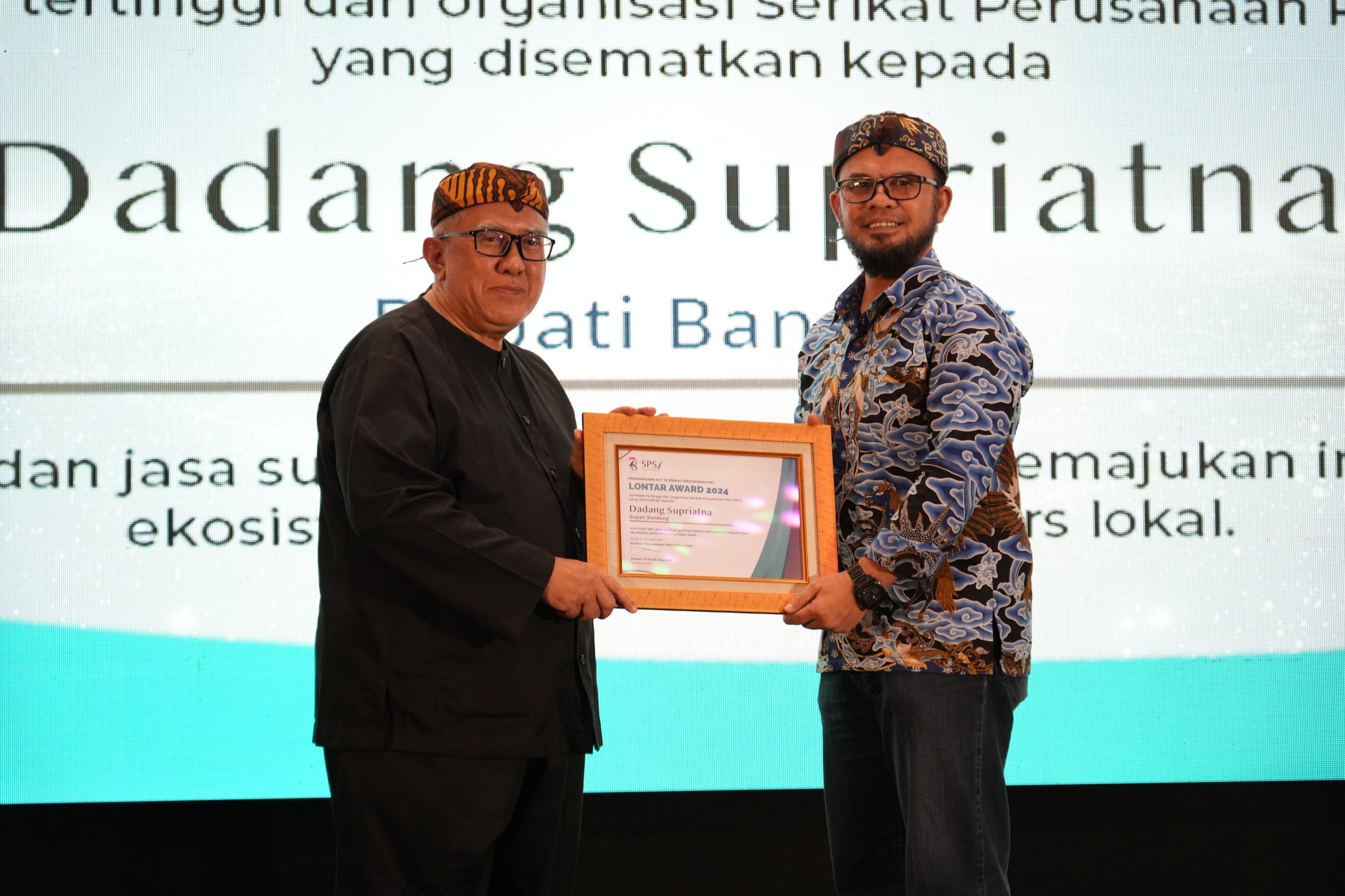 Sementara itu, Bupati Dadang Supriatna menyampaikan kebanggaan dan rasa terima kasihnya kepada Serikat Perusahaan Pers (SPP) atas penghargaan Lontar Award yang diterimanya atas dedikasinya memajukan ekosistem pers khususnya perusahaan pers lokal di Kabupaten Bandung.