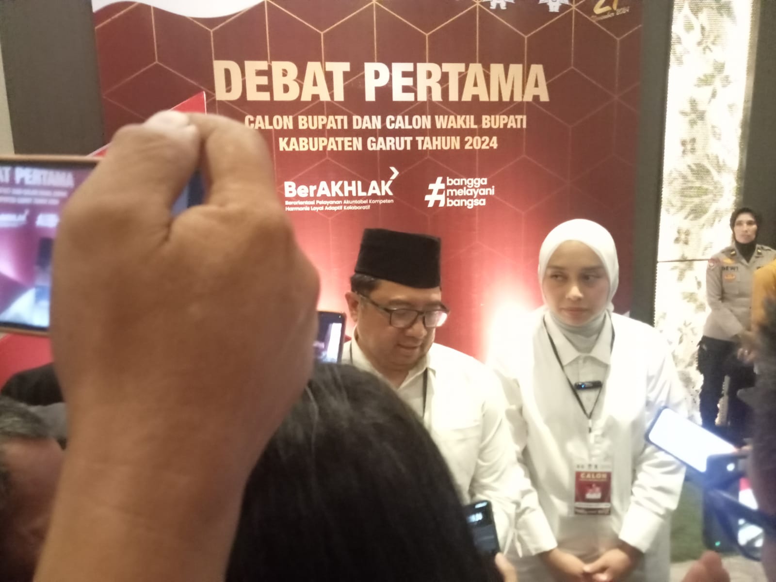 Garut – Debat publik pertama calon bupati dan wakil bupati Garut, dr ,Ir Abdusy Syakur Amin dan L Putri Karlina,MBA berlangsung di Hotel Santika, Tarogong Kaler, Garut. (23 Oktober 2024)