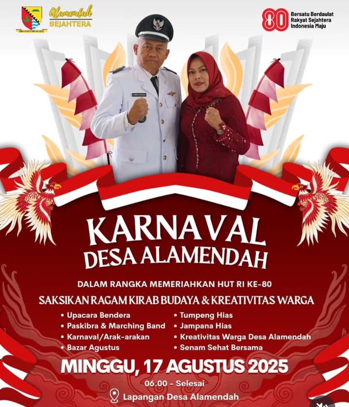“Alhamdulillah, Karnaval Desa Alamendah tahun ini berjalan dengan meriah dan penuh semangat persatuan. Saya sangat bangga dengan antusiasme warga yang luar biasa. Semoga momentum HUT RI ke-80 ini semakin menumbuhkan rasa cinta tanah air dan semangat membangun desa yang lebih maju,” ujarnya.