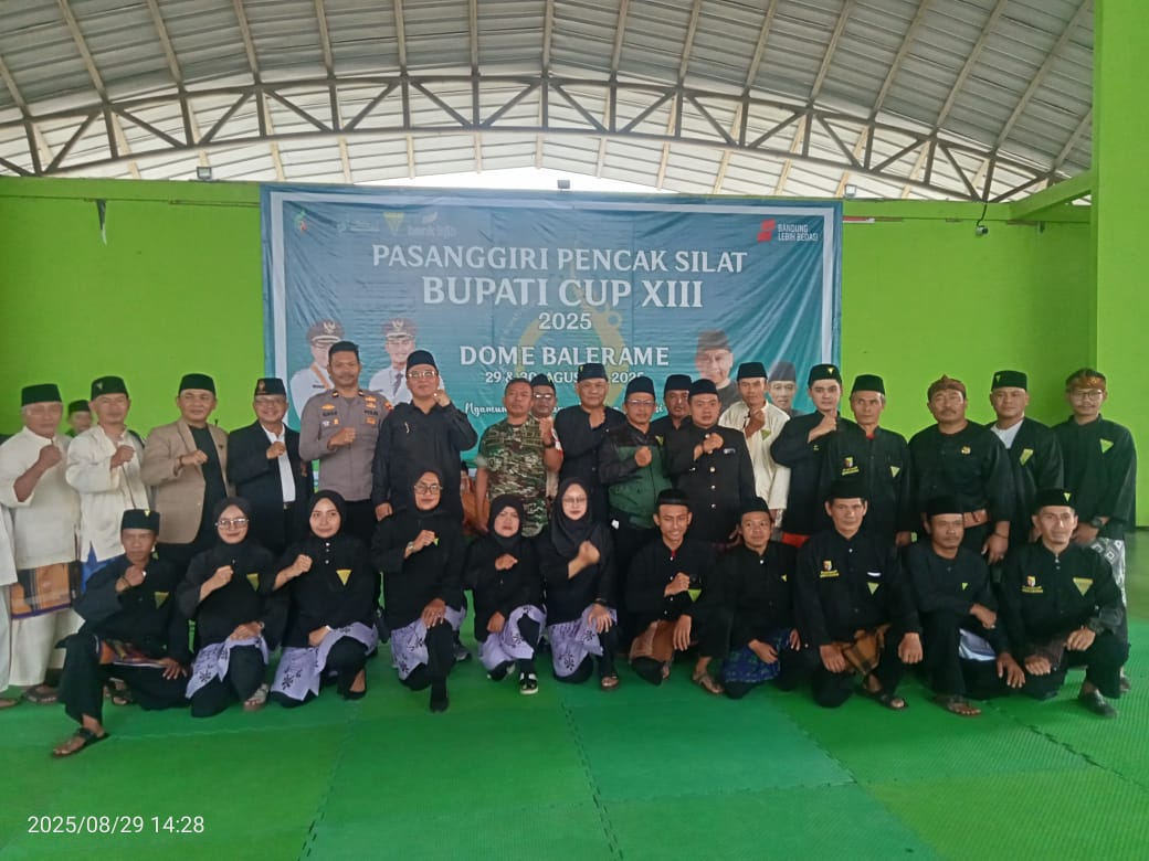 KAB BANDUNG,Pemerintah Kabupaten Bandung melalui Dinas Sosial Budaya membuka Pasanggiri Seni Ibing Pencak Silat Bupati Cup XIII, bertempat di Dome Balerame Soreang, Jumat ( 29/8/25 ).