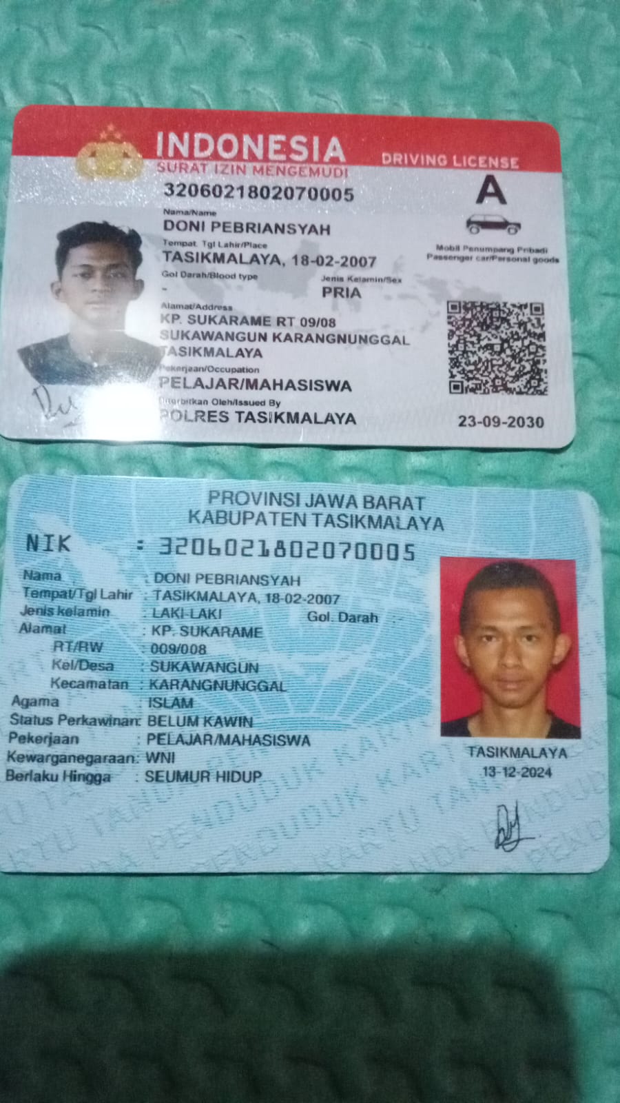 Ber isi satu buah sim A dan ktp A n : Doni pebriansyah