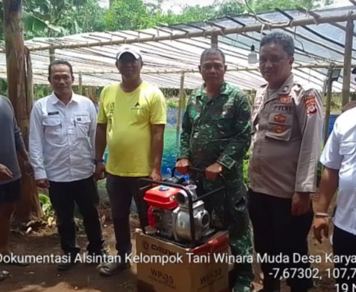 Cibalong – Kelompok Tani Winara Muda di Desa Karyasari, Kecamatan Cibalong, Kabupaten Garut, menerima bantuan alat dan mesin pertanian (alsintan) yang diserahkan langsung oleh UPT Pertanian Kecamatan Cibalong kepada ketua kelompok tani.