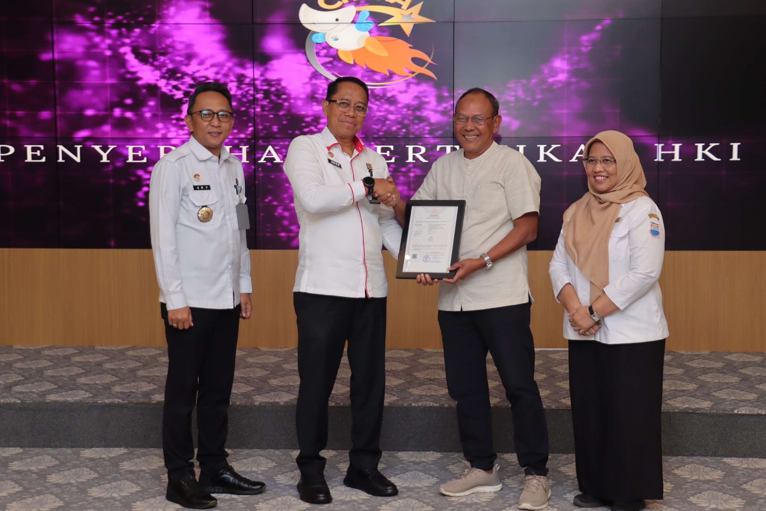 Pada kesempatan tersebut, Pemkot Cimahi juga melakukan penandatanganan kerja sama dengan Kantor Wilayah Kementerian Hukum dan HAM Jawa Barat. Kolaborasi ini menjadi langkah strategis untuk mempercepat pembentukan Sentra Pelayanan Hak Kekayaan Intelektual (HAKI) sebagai ruang layanan dan pendampingan pendaftaran merek, hak cipta, indikasi geografis dan HKI lainnya, khususnya bagi UMKM, komunitas kreatif, serta peserta inkubasi Cimahi Technopark. Sentra ini menjadi fondasi agar karya inovatif warga Cimahi mendapat perlindungan yang memadai.