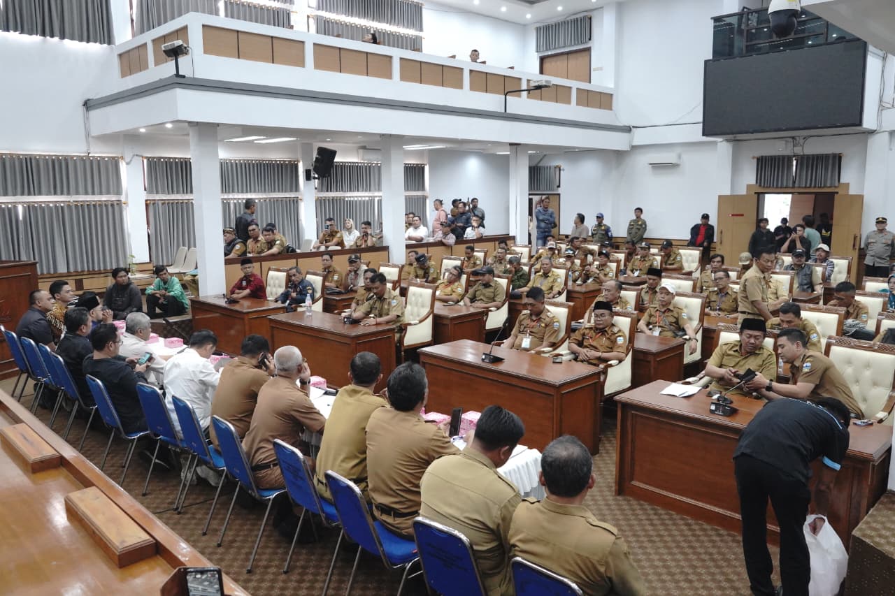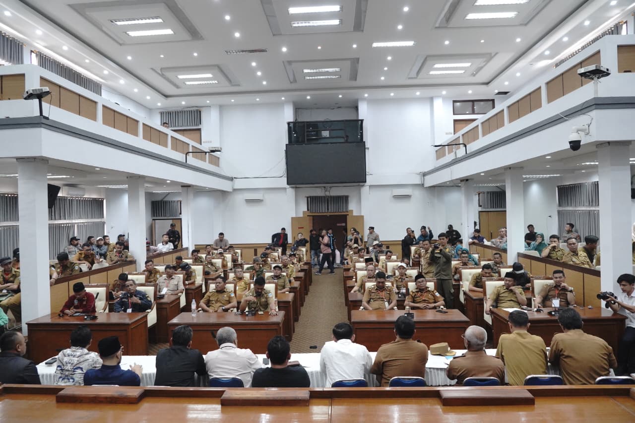 *GARUT, Tarogong Kidul* – Bupati Garut, Abdusy Syakur Amin, bersama Ketua DPRD Kabupaten Garut, Aris Munandar menemui secara langsung Aksi Damai dan Audiensi dari DPC Asosiasi Pemerintahan Desa Seluruh Indonesia (APDESI) Merah Putih Kabupaten Garut, yang dilaksanakan di Ruang Rapat Paripurna DRPD Garut, Jalan Patriot, Kecamatan Tarogong Kidul, Kabupaten Garut, Senin (15/12/2025).