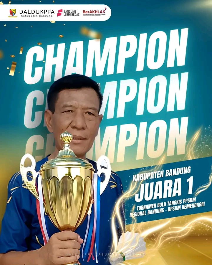 KAB BANDUNG Kepala Dinas Pengendalian Penduduk, Keluarga Berencana, Pemberdayaan Perempuan dan Perlindungan Anak (DALDUKPPA) Kabupaten Bandung, H. Muhamad Hairun, S.H., M.H., berhasil meraih Juara 1 cabang olahraga Bulutangkis ganda putra dalam ajang pertandingan yang digelar di Rood To BBPK ll Jatinangor