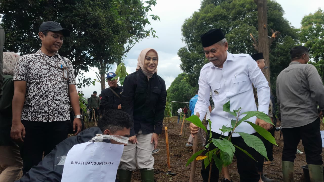 Wakil Bupati Bandung Barat ikut serta menanam Kakao dan kelapa yang telah disiapkan oleh panitia, usai menanam kakao Asep Ismail menyampaikan kepada media ini.