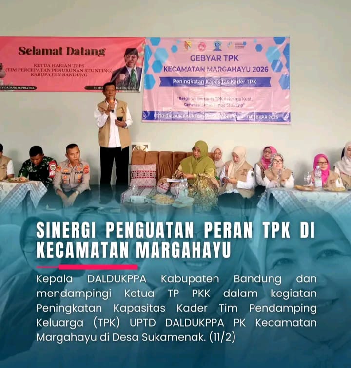 Kabupaten Bandung Kepala Dinas Pengendalian Penduduk, Keluarga Berencana, Pemberdayaan Perempuan dan Perlindungan Anak (DALDUKPPA) Kabupaten Bandung, H. Muhamad Hairun, SH., MH., mendampingi Ketua TP PKK dalam kegiatan Peningkatan Kapasitas Kader Tim Pendamping Keluarga (TPK) UPTD DALDUKPPA PK Kecamatan Margahayu yang dilaksanakan di Aula Minisoccer Desa Sukamenak, Kecamatan Margahayu Rabu 11/2/2026
