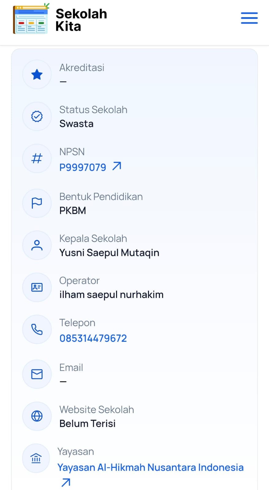Berdasarkan data yang beredar pada laman profil satuan pendidikan, PKBM Al-Hikmah Nusantara tercatat sebagai: