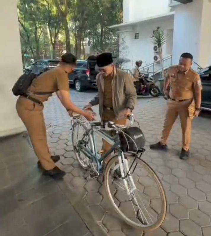 Momen langka tersebut terjadi Pada Senin pagi,13 April 2026,Kang Adit sapaan akrabnya,memilih bersepeda dalam menjalankan aktivitasnya sebagai bentuk kampanye gaya hidup ramah lingkungan.