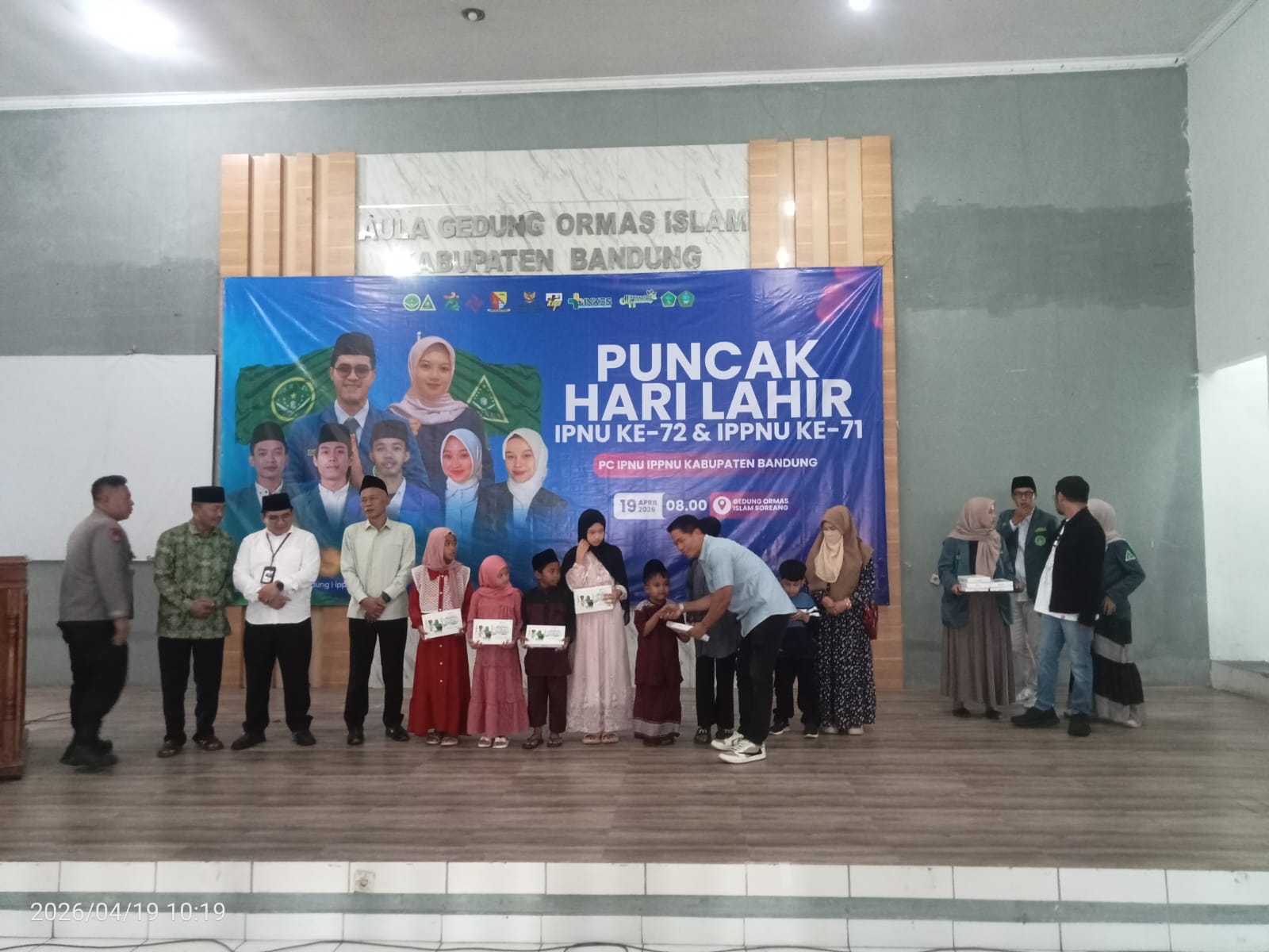 KAB BANDUNG Puncak peringatan Hari Lahir Ikatan Pelajar Nahdlatul Ulama (IPNU) ke-72 dan Ikatan Pelajar Putri Nahdlatul Ulama (IPPNU) ke-71 tingkat PC IPNU-IPPNU Kabupaten Bandung berlangsung meriah pada Sabtu, 19 April 2026 di Gedung Ormas Islam Soreang.