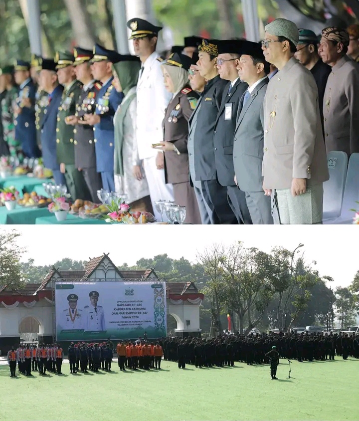 KAB BANDUNG,Bupati Bandung, Dadang Supriatna, memimpin langsung Upacara Peringatan Hari Jadi Kabupaten Bandung (HJKB) ke-385 yang dirangkaikan dengan Peringatan Hari Kartini ke-147. Kegiatan tersebut berlangsung di Lapangan Upakarti, Soreang, Senin (20/4/2026), dengan suasana sederhana namun tetap khidmat.